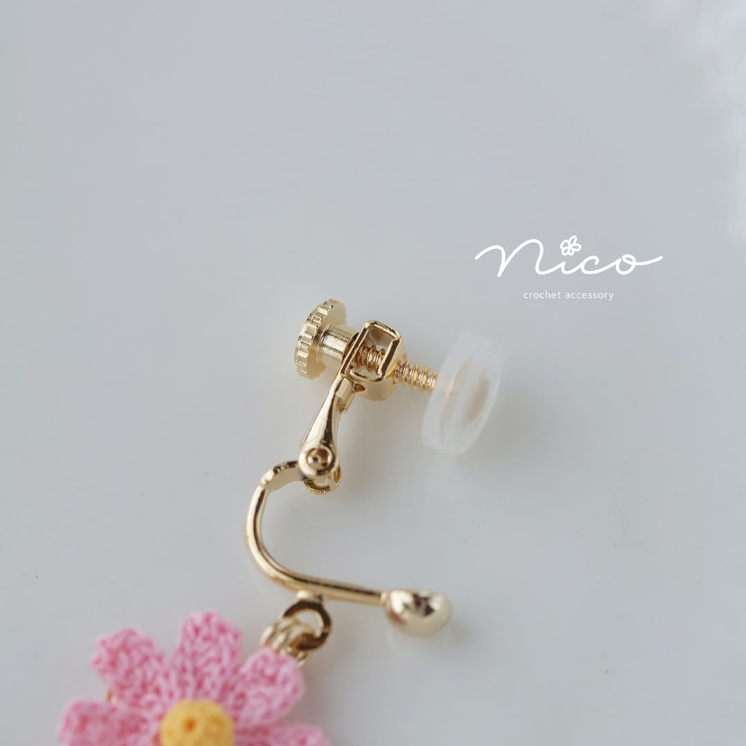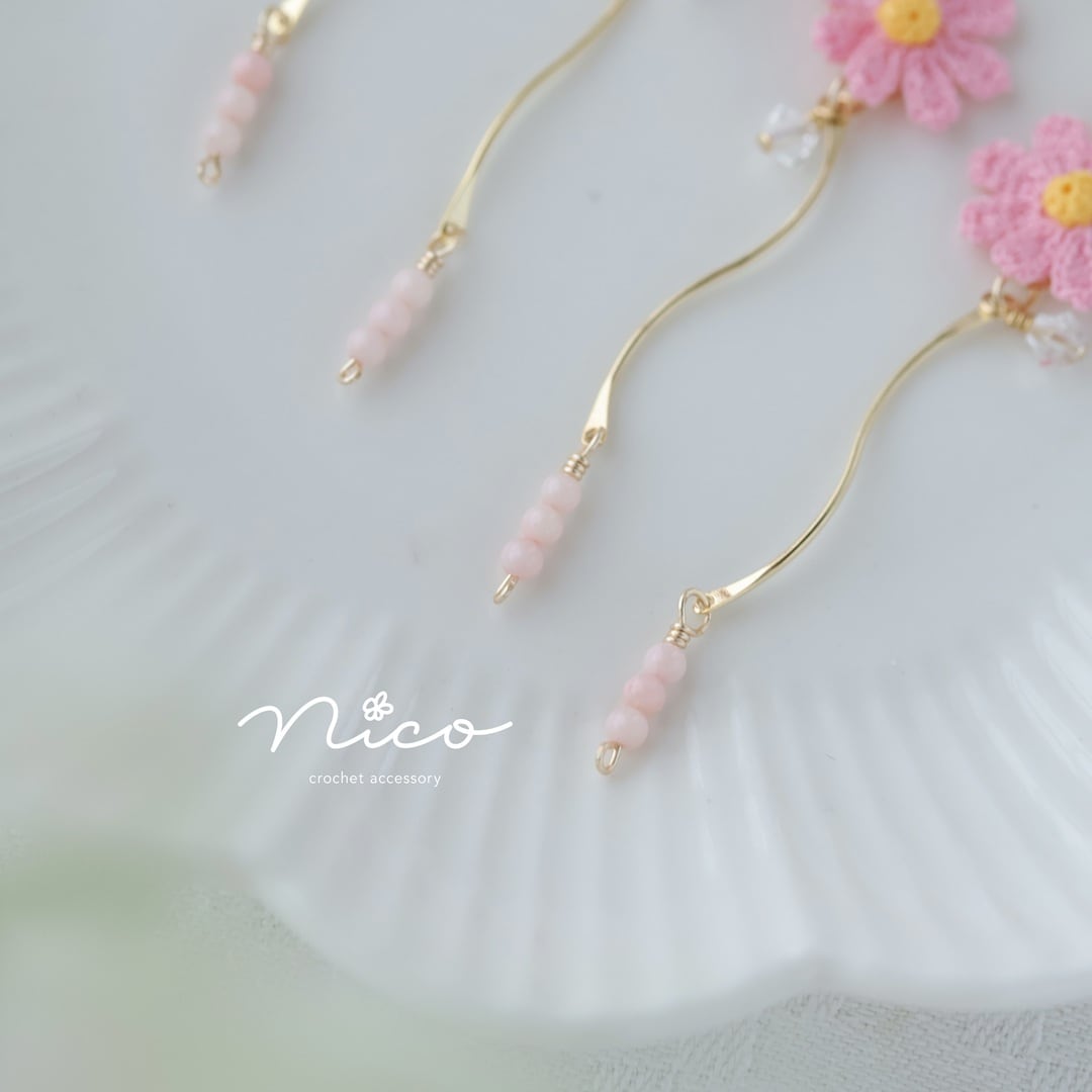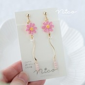 秋の風に揺れるコスモスを思い起こさせるような、可憐なイヤリングです。