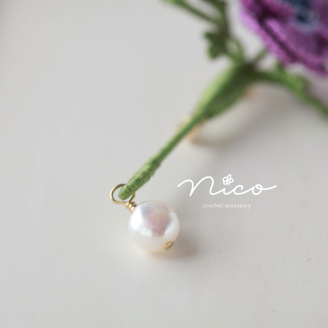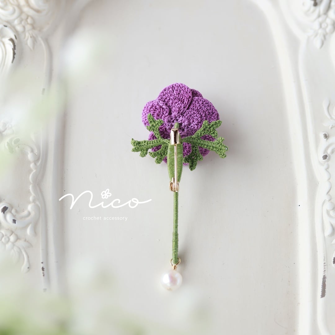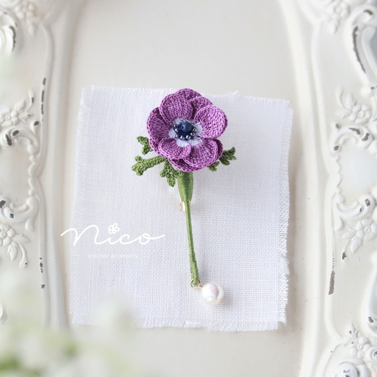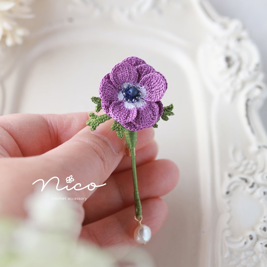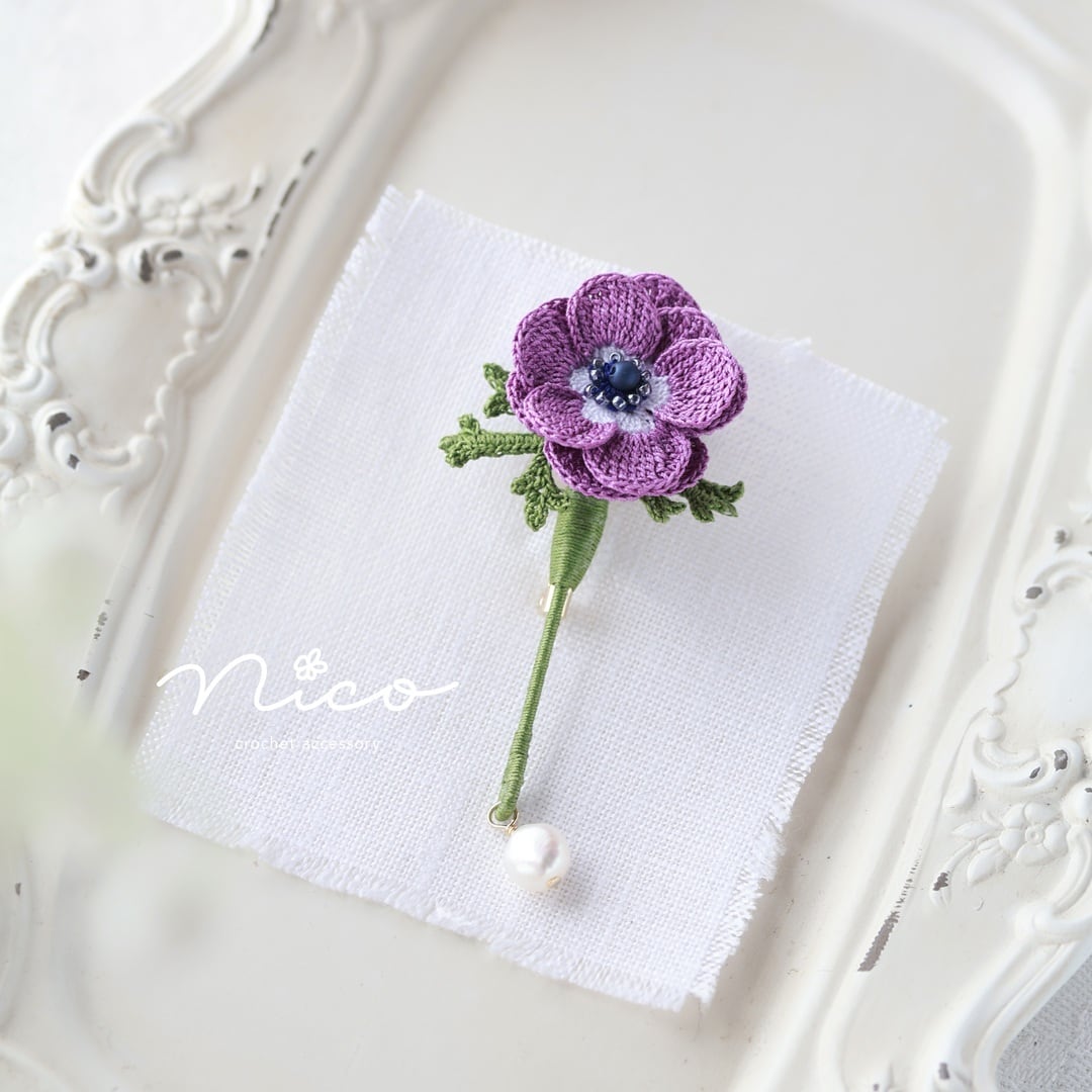 一本の極細糸から丁寧に編み上げたアネモネをブローチに仕立てました。