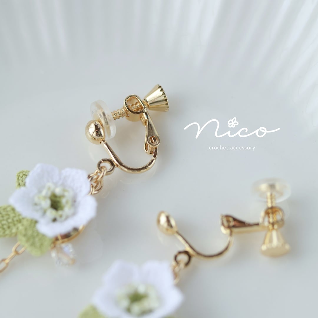 ・ひとつひとつ丁寧に作ることを心がけておりますが、レース編みアクセサリーは大変繊細です。水濡れ、汗、火器、強い衝撃、直射日光、高温等にご注意ください。